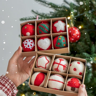 6-Pack Wool Felt Christmas Ball Ornaments