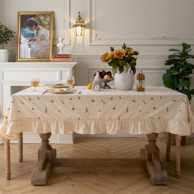 Apricot Floral Embroidered Cotton Tablecloth, Rectangle Tablecloths, Square Tablecloths, Round Tablecloth