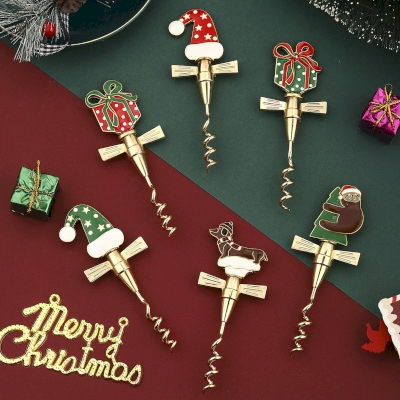 BELNOR Christmas Corkscrew, 6 Festive Designs in Gold Enamel Alloy