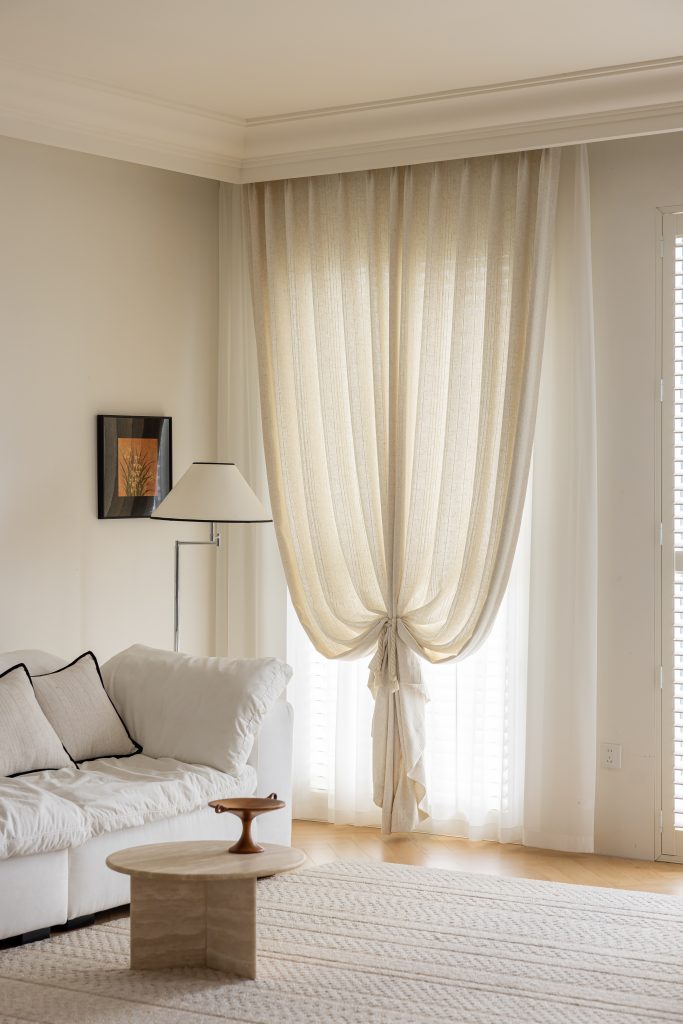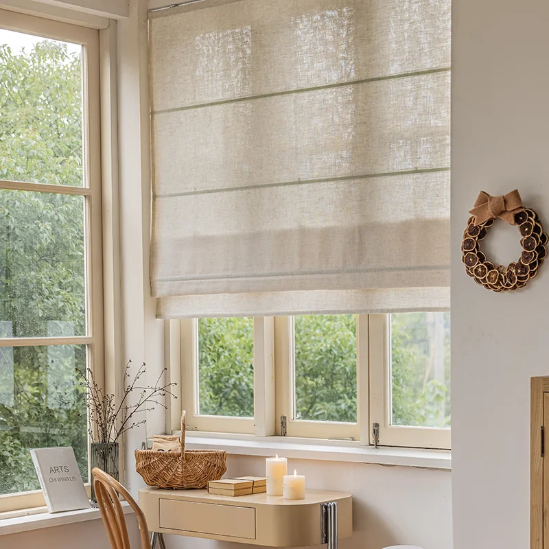 Don’t forget linen roman blinds, made from the same fabric as your curtains or panels. They frame the window neatly and add a tailored touch without feeling stiff or formal.