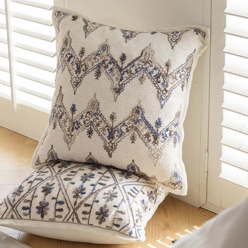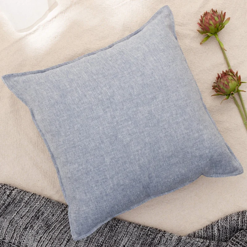 If you want a modern twist, a teal (blue-green) linen cushion is a bold, contemporary choice that works beautifully with neutral sofas and wooden furniture.