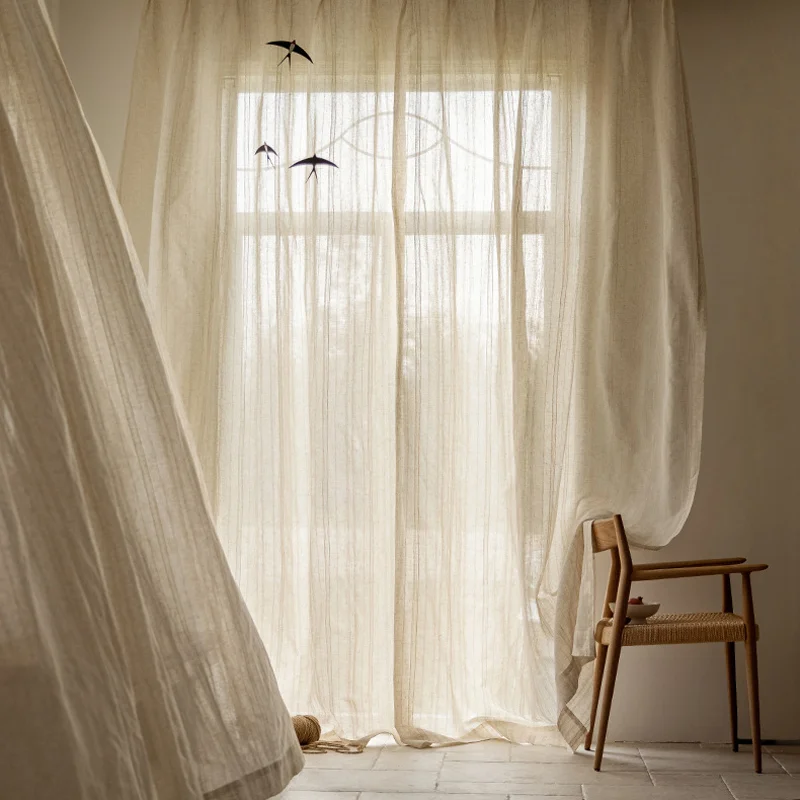 You can choose a light, airy voile in linen for a bohemian spirit and beautiful plays of light. Sheer linen lets daylight filter through while keeping the room bright and soft.
