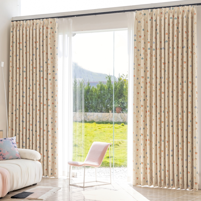 Custom Curtains > Custom-made children's curtain POMMELO, printed chenille fabric, Kingdom of Little Pumpkins pattern