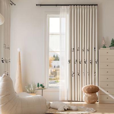Custom Curtains > Custom-made children's curtains by PANDINE, embroidered chenille fabric, playful panda design