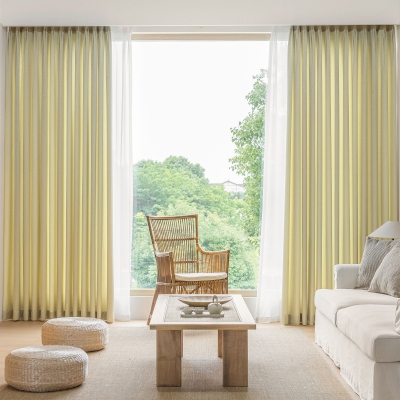 This fabric can be blackout by choosing the "blackout lining" option.Please note that for curtains exceeding 2.7 meters in height, a slight horizontal seam may be visible due to the fabric length.Composition: 84% Polyester, 16% RayonWeight: 350 g/㎡ -