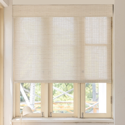 Home > Custom Shades > Custom Roman Shade ELORIA, Jute and Paper Weave, Fine Texture in Natural Linen