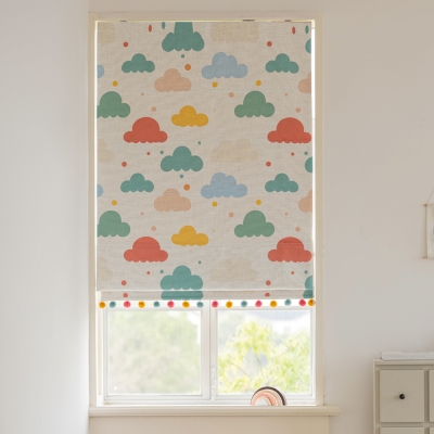 Custom Roman Shades, Linen-Look Kids Shades, Colorful Cloud Design – SKYLOOM Roman Shades