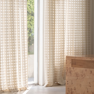 Custom Curtains > Custom Sheer Curtain LATTIA, Linen-Effect Fabric with Graphic Openwork Square Pattern