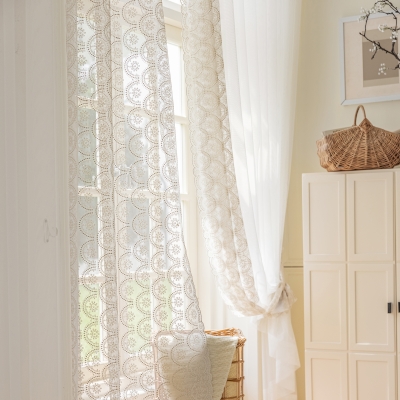 Home > Custom Curtains > Custom Sheer Curtains Anissa, Beige Embroidery, Fish Scale and Snowflake Patterns
