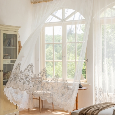 The LINDER Sheer Curtain is an invitation to the magnificence of Baroque style. Crafted from transparent polyester, it is beautifully enhanced with arabesque embroidery motifs reminiscent of the sumptuous ornaments of ancient palaces. The scalloped edges add a touch of finesse and movement, evoking the majestic curtains of a bygone era. Playing with shadow and light, this sheer curtain brings timeless elegance and historical charm to your interior.
