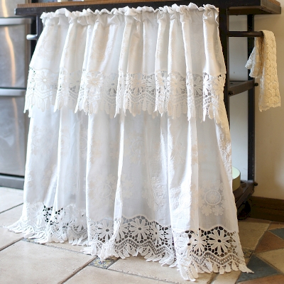 Home > Cafe Curtains > Double-Layered Lace Cutout Flower Half Curtains, Small Window Curtains, Short Window Curtains, Cafe Curtains, Kitchen Curtains