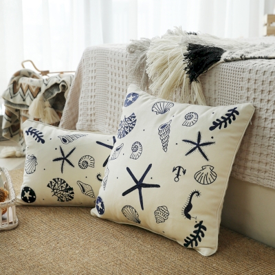 Home > Cushion Covers > Embroidered Throw Pillow with Blue Ocean Design, Decorative Pillows, Couch Throw Pillows, Blue Throw Pillows