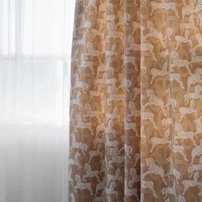 Home > Custom Curtains > Equestrian Curtain, Jacquard Chenille Fabric, Horse and Ring Pattern
