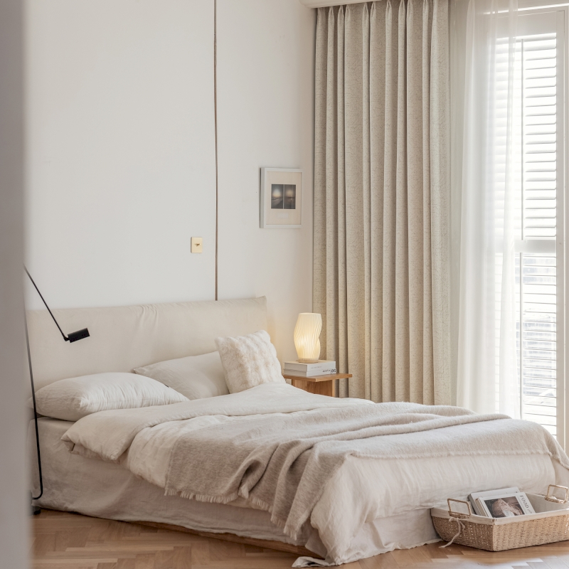 The KERALA Blackout Curtains evoke the beauty of natural crevices through their embossed chenille texture, creating a visual connection with the tranquility of nature. Choose the Standard style for a clean, unadorned silhouette or opt for the Design style, which adds a touch of sophistication with an elegant lace hem for a more refined and structured effect.
