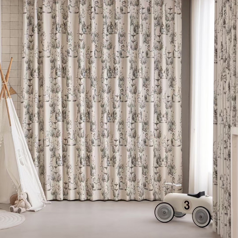 Custom Kids Curtains, Blackout Chenille Fabric, Garden Rabbit Pattern – LAPINETTE Curtains