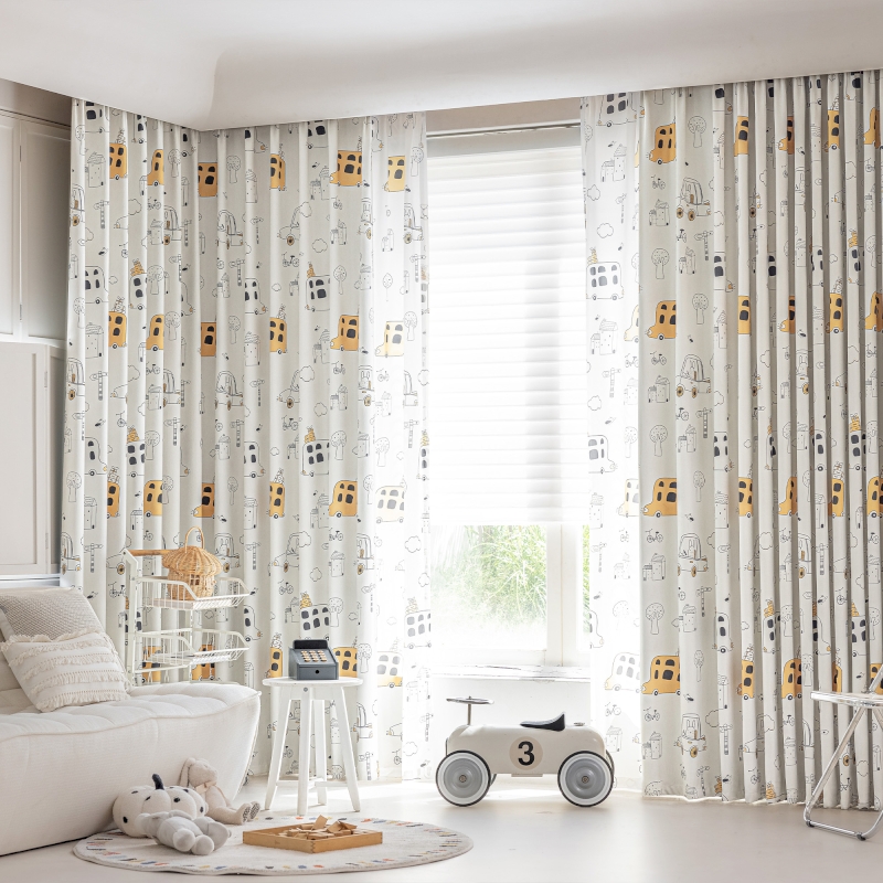 LUMICAR Custom-Made Children's Curtain, Printed Chenille Fabric, Happy Little Bus Pattern