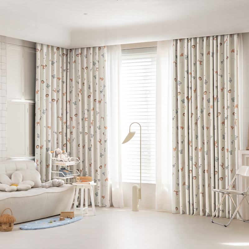 MINIOT Custom-Made Children's Curtain, Printed Chenille Fabric, Playful Zoo Pattern