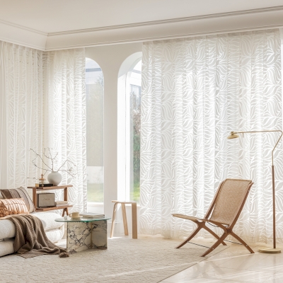 MOHEA Custom-Made Sheer Curtain, White Devoured Fabric, Undulating Foliage Pattern