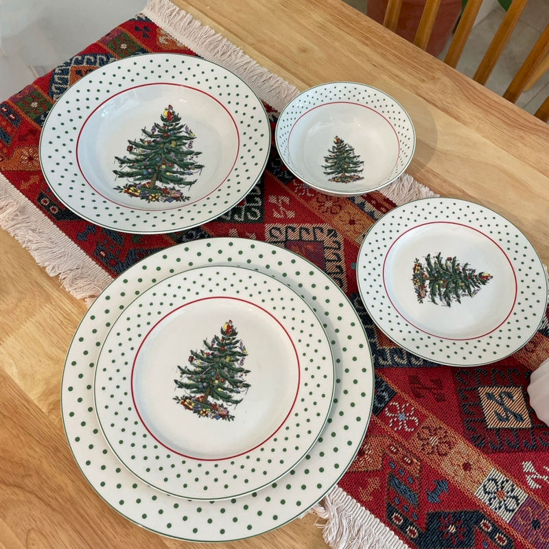 Home > Deco & Fashion > NOËLVERA Dinnerware Set, Fir Tree and Green Polka Dot Pattern, 5 Pieces in Ceramic