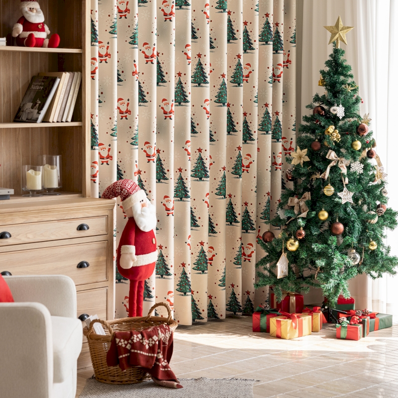 Custom Christmas Curtains, Printed Chenille Fabric, Santa and Christmas Tree Pattern – NOËLYS Curtains