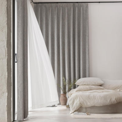 Like a veil of mist caressing the mountains, the Nova curtain envelops your home in soothing softness. Its subtle gray, both understated and refined, elegantly captures the light, revealing a bouclé texture inspired by the natural fibers of wool.