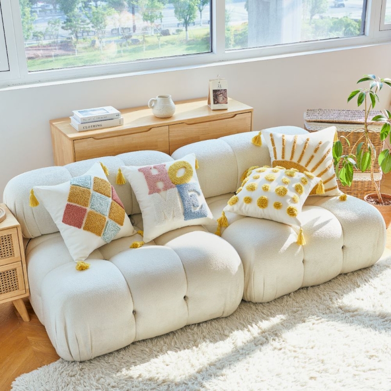 Home > Cushion Covers > RIGOLO Cushion, Colorful Tufted Embroidery, Fringed Finish, Playful and Childish Style