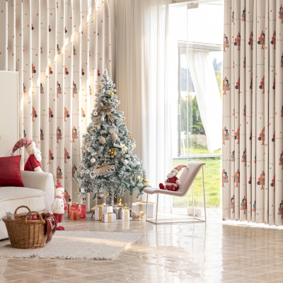 Custom Christmas Curtains, Printed Chenille Fabric, Multicolor Dot Christmas Tree Pattern – SAPINET Curtains