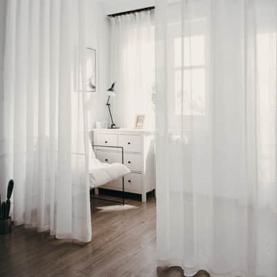 Please note that for curtains with a height greater than106", a slight horizontal stitching line might be visible due to the fabric's length. Elevate your interior design with the sophistication of Soline lace sheer curtains in white.