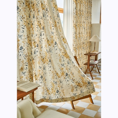 Dress your windows with artistic elegance using our Sunny Elegance curtain. Against a rich, sunlit yellow backdrop, this curtain showcases a meticulous watercolor portrayal of delicate wisteria blooms. Crafted from a blend of cotton and linen, it offers both exquisite aesthetics and lasting durability. Let nature, artistry, and sophistication gracefully converge in your space, creating a timeless and high-fashion ambiance. Elevate your interior with a touch of botanical opulence.