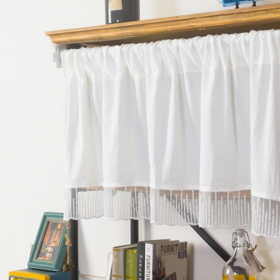 Home > Cafe Curtains > White Cotton Short Curtains with Lace Trim, Small Window Curtains, Short Window Curtains, Half Window Curtain, Cafe Curtains, Kitchen Curtains