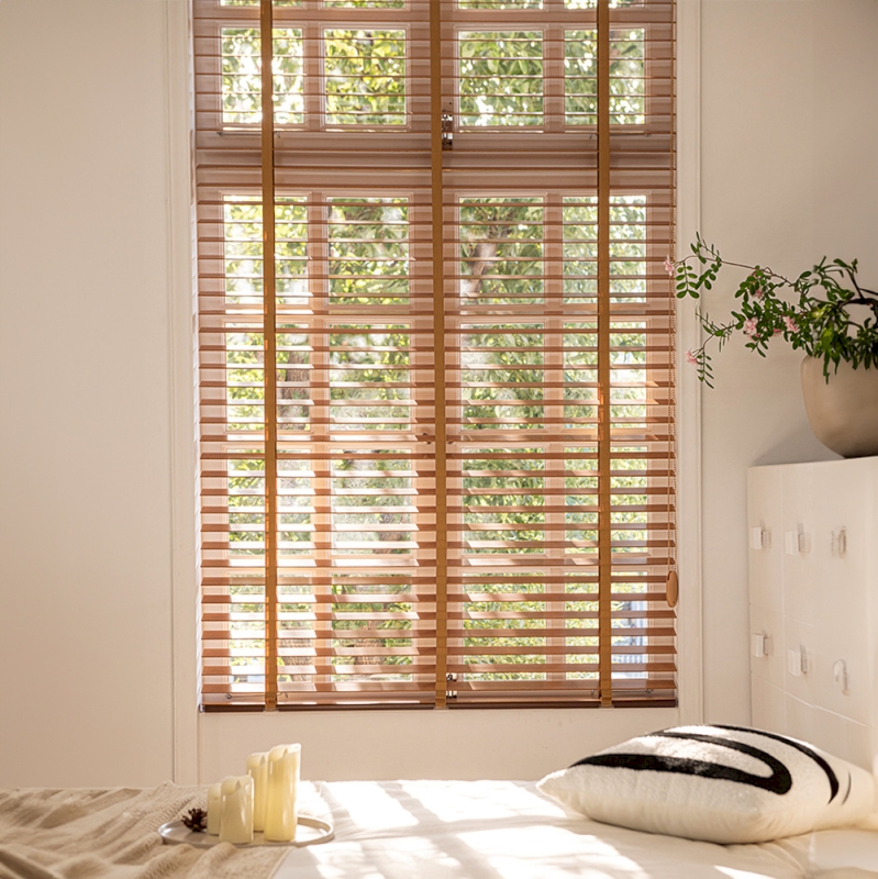 ● Made to measure● Basswood● Aluminum headrail● Slat Size: 50 mm● Slat thickness: 3 mm● Smooth lacquer finish for enhanced protection and easy cleaning● Top and bottom rails color-matched to the blind● Wood dried and treated for maximum durability● Universal mounting brackets included for easy installation on walls or ceilings● Adjust the slat height and angle effortlessly with a single cord for personalized ambiance at any time● For blinds with great height or installed at a high position, contact our customer service to make the blind with a cord length suited to your installation. -